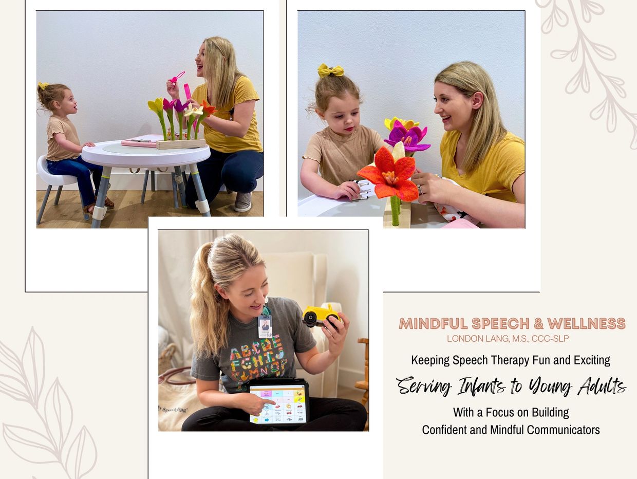 Our mission is to support clients in becoming mindful about their communication to promote overall wellness while having fun. A holistic, comprehensive, and client-centered approach is taken to provide high-quality and individualized speech therapy sessions. Collaboration and goal setting are done to reduce the incidence of new disorders, identify disorders at an early stage, and decrease the impact of disability. Sessions are provided to enhance and/or maintain general well-being and quality of life. Education is provided to increase awareness of risk behaviors and techniques related to communication disorders. London Lang , M.S., CCC-SLP is a board-certified speech therapist who is thrilled to help you meet your speech and language goals.